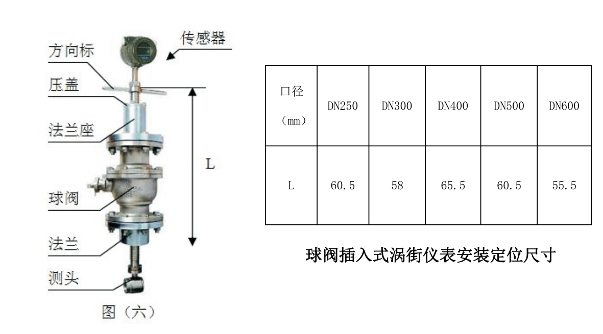 插入式蒸汽流量計尺寸以及安裝: