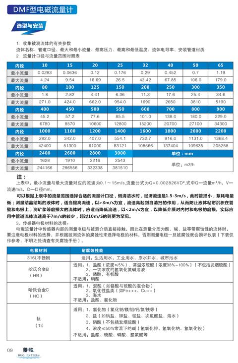電磁流量計選型樣本