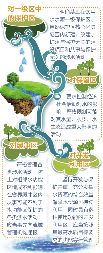 據(jù)介紹,原《水功能區(qū)管理辦法》對(duì)水功能區(qū)分類管理的規(guī)定比較簡(jiǎn)單,修訂后的辦法將國務(wù)院批復(fù)的全國重要江河水功能區(qū)劃的要求寫入,對(duì)兩級(jí)不同類別的水功能區(qū)的管理逐一明確要求。